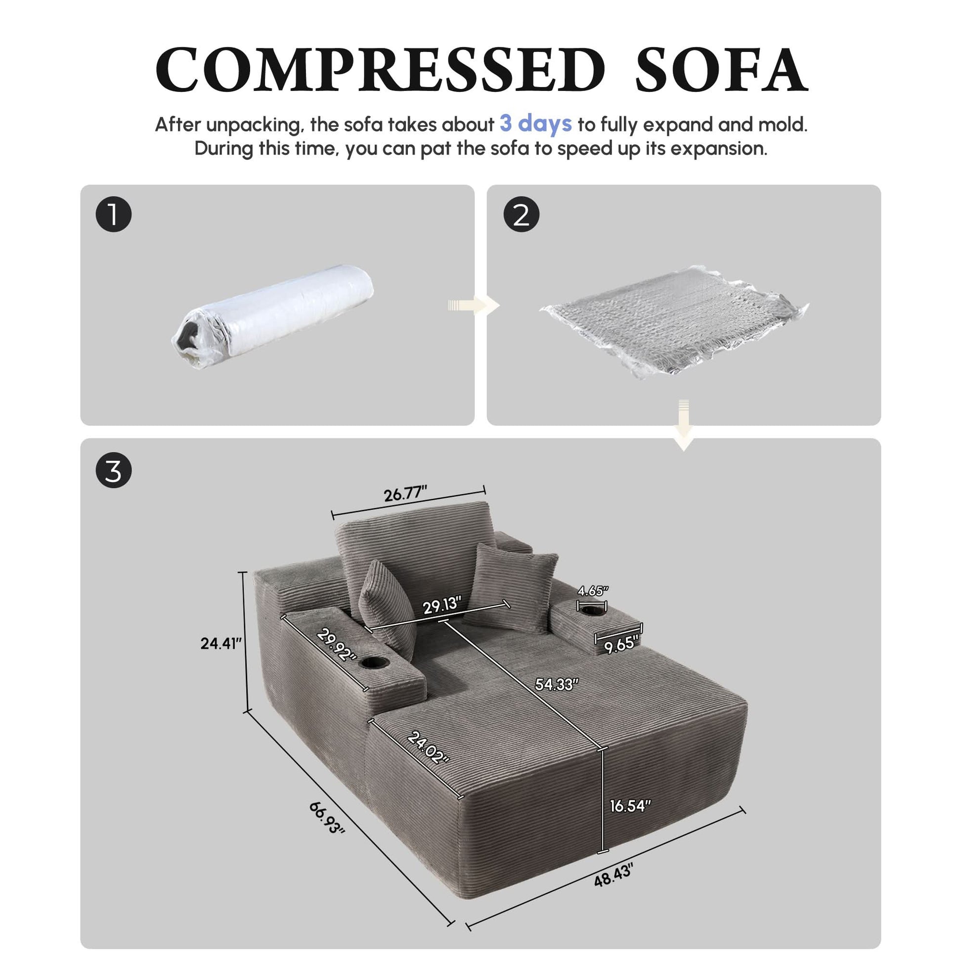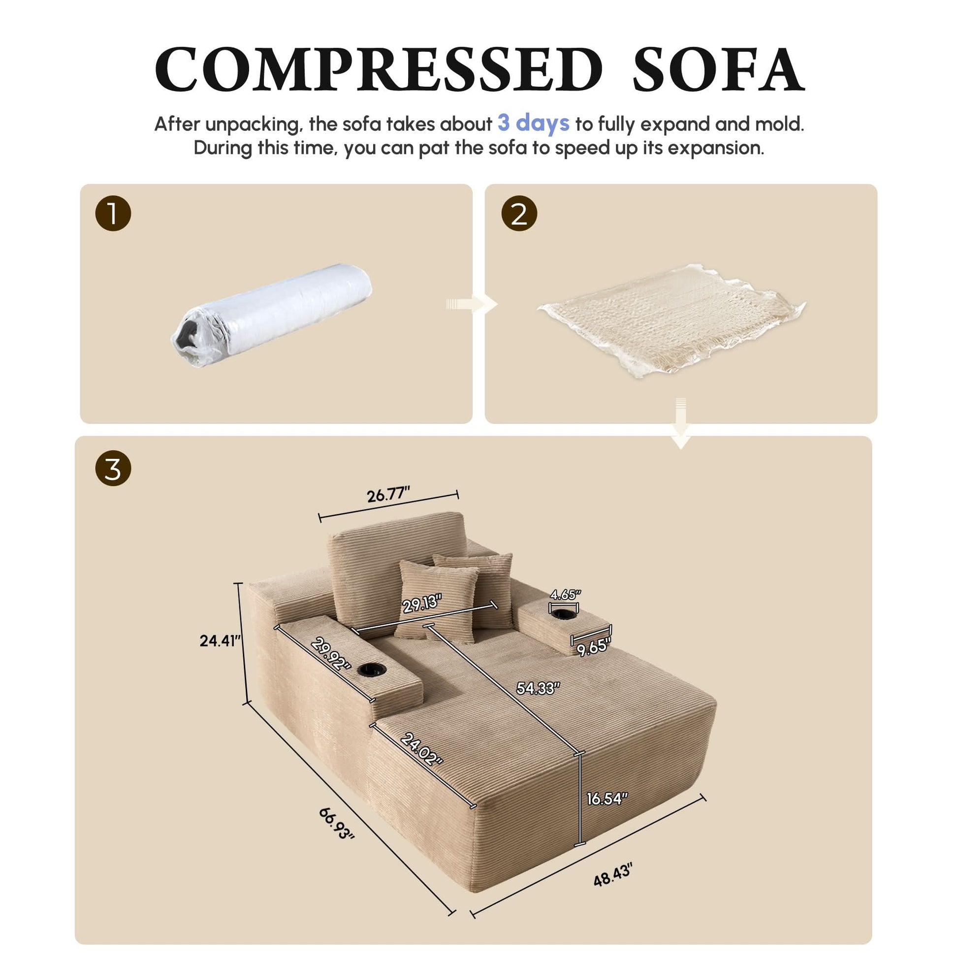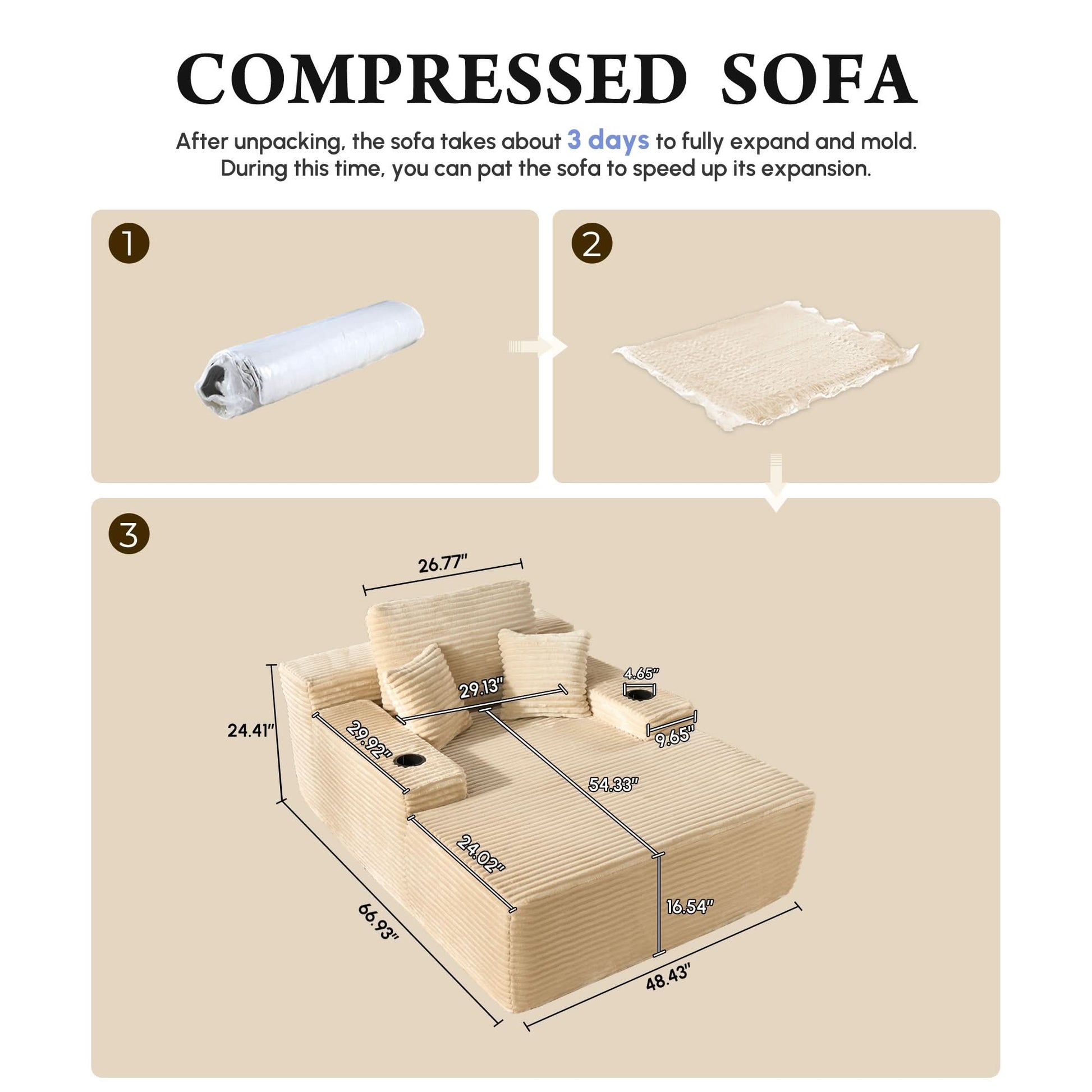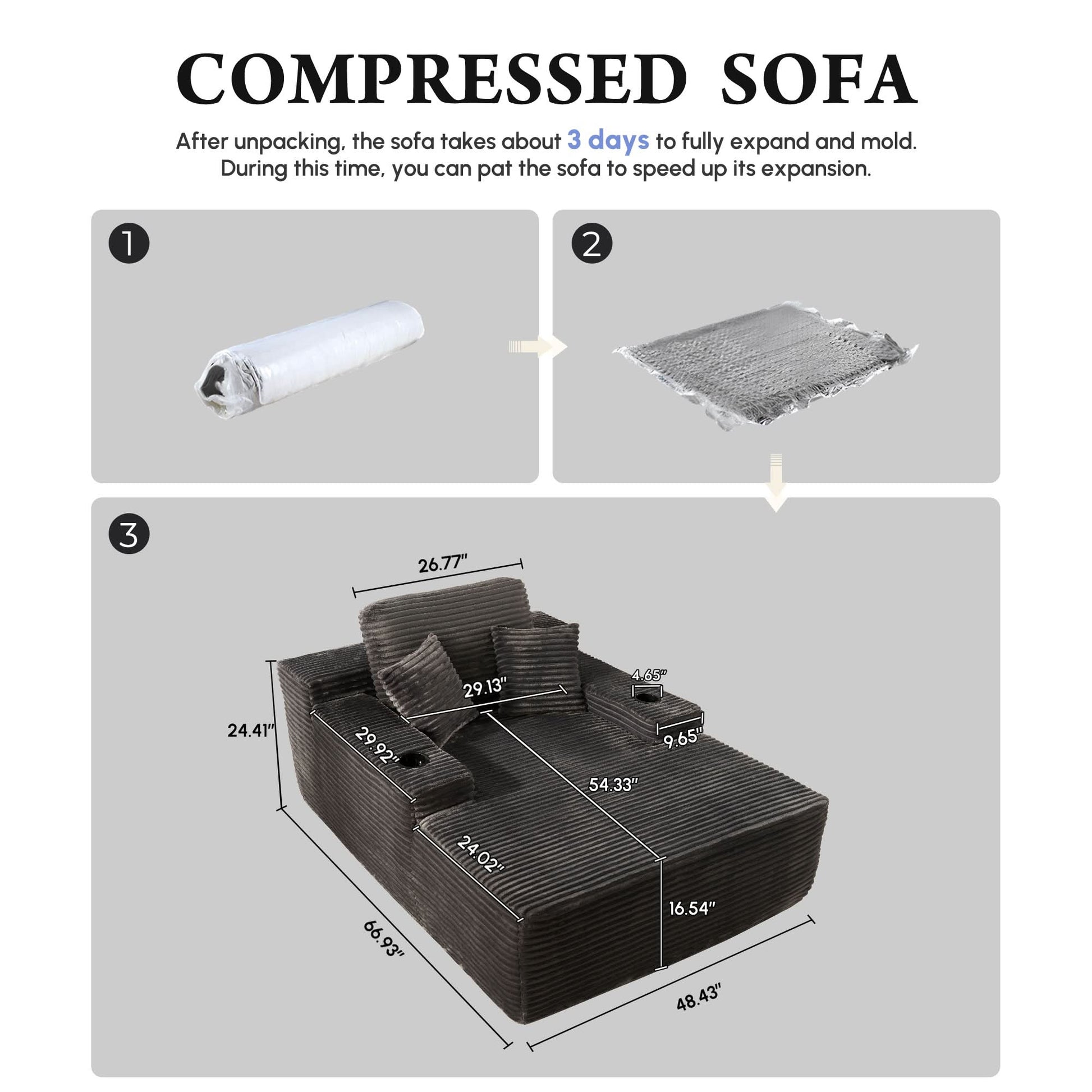 No Assembly Required:Vacuum-packed for easy setup—just unpack and let it sit for 24–48 hours to fully expand. Lightly pat each section to restore fluff and elasticity.