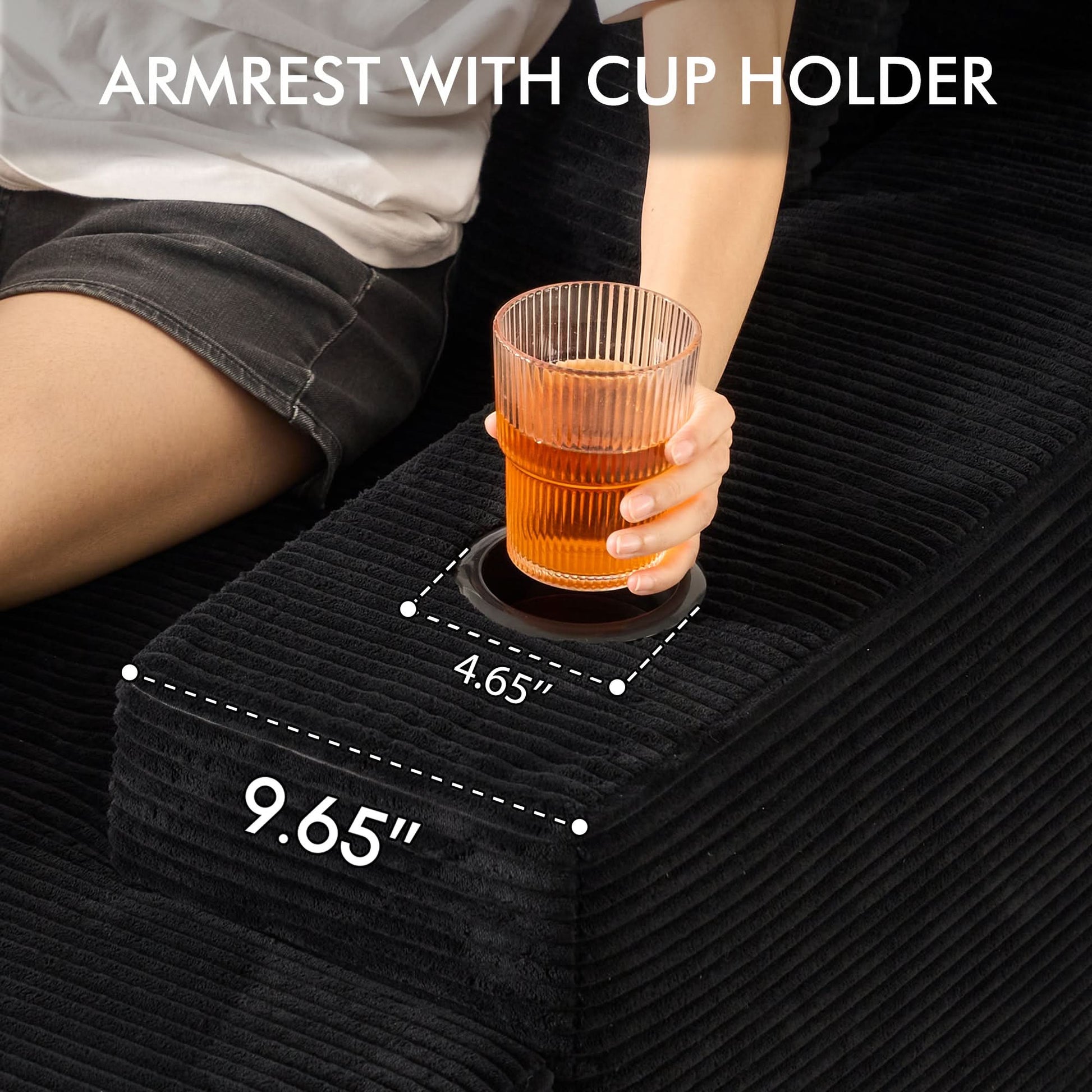 OVIOS 67'' Oversized Chaise Lounge ,Corduroy Sleeper Sofa with Cup Holders