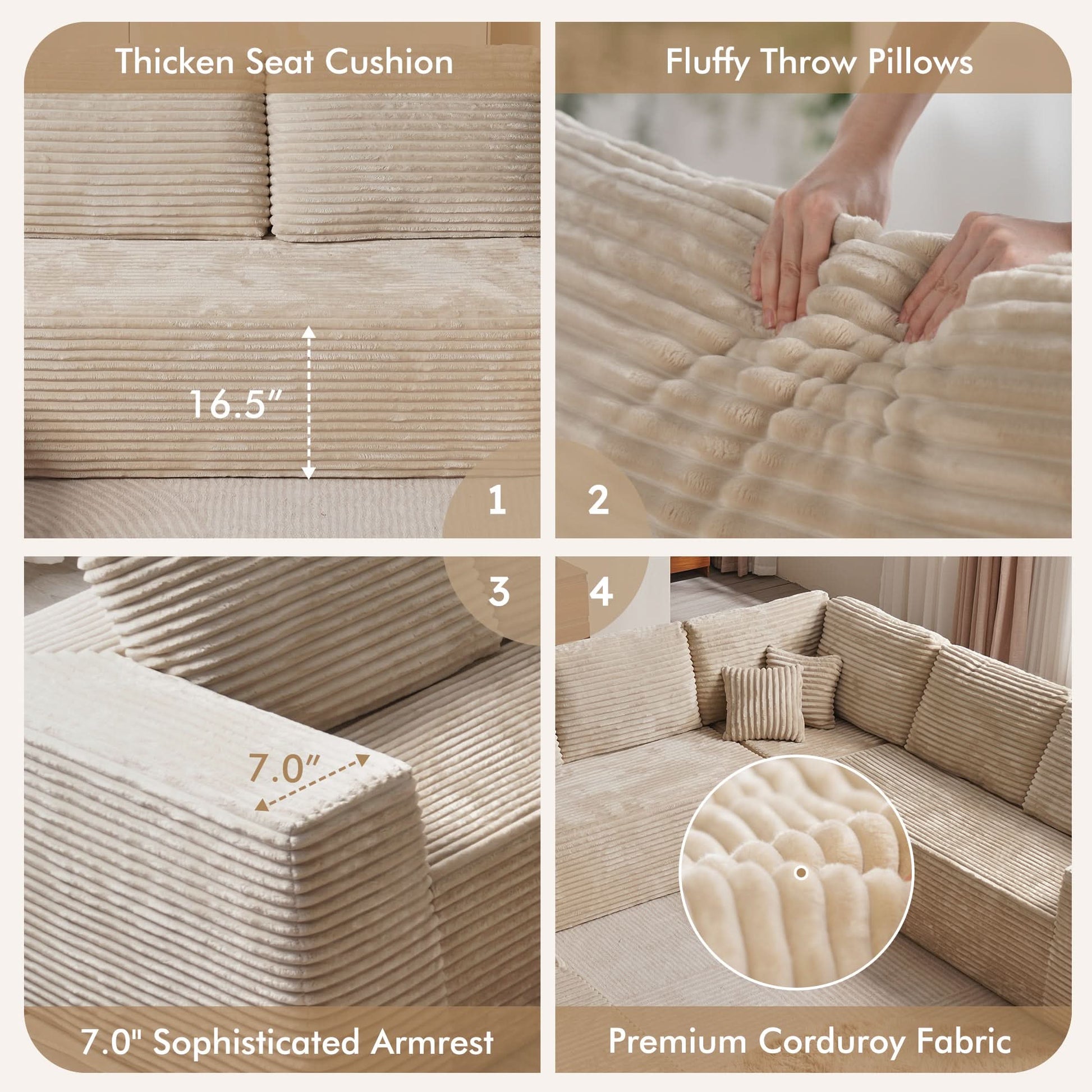 OVIOS Modular Cloud Sofa with Memory Foam, L-Shaped Chaise & Corduroy Upholstery - No Assembly Required